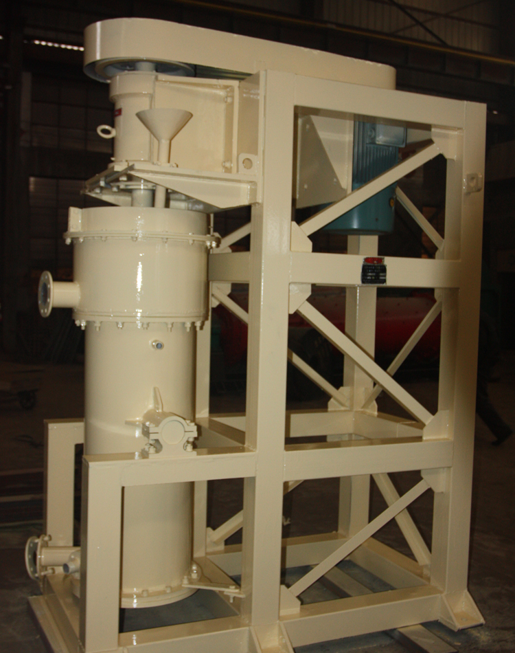 工作原理:粉碎介質與物料之間的充實度高,球與球、球與設備襯里及攪拌螺旋體的碰撞很少。整個轉動部分在宏觀上受力的平衡處理使支撐系統受力很小,軸承的能耗也很小。達標的物料較未達標的物料更容易到達排料口附近。該設備很容易就實現了粉碎過程的內部分級,過粉碎現象大為減少。